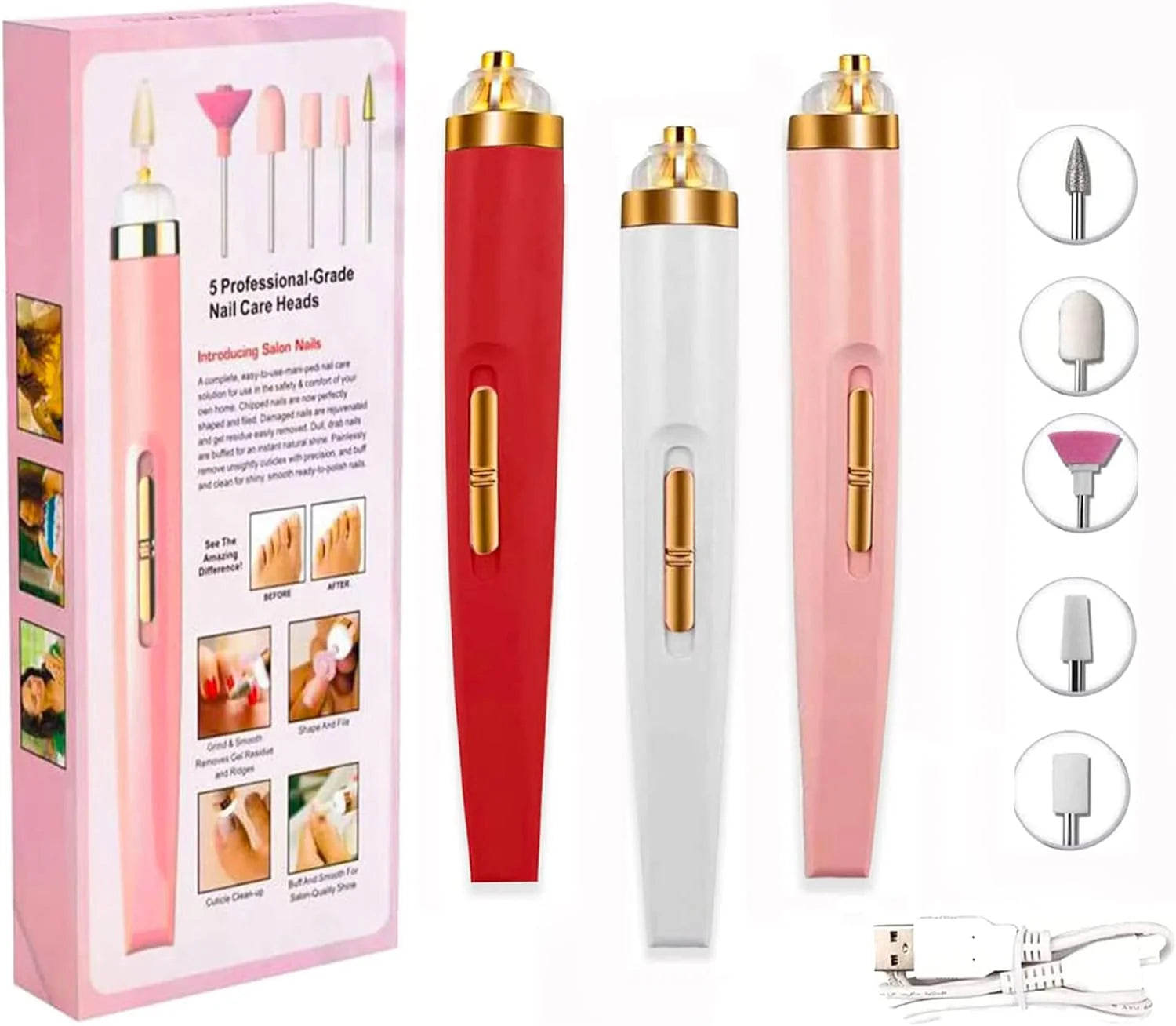 PROFESSIONAL NAIL FILE: The electric nail file is Manicure Kit 5 in 1 set, has 5 different abrasive heads. Different gears can be adjusted to meet the needs of different groups of people. It can be used to shape, polish, and remove acrylic nails, gel nail or grooming pet nails, etc.