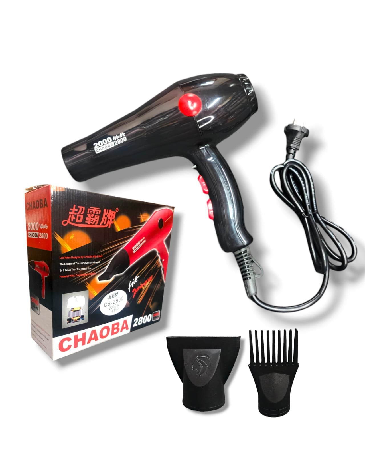 The CHAOBA Professional Hair Dryer CB-2800 is a powerful and efficient hair dryer designed for both professional salons and home use. It features a high-performance motor and multiple heat and speed settings, making it suitable for all hair types and styling needs. With an ergonomic design, it is easy to handle, reducing arm strain during use, while professional-grade attachments help create precise styles.