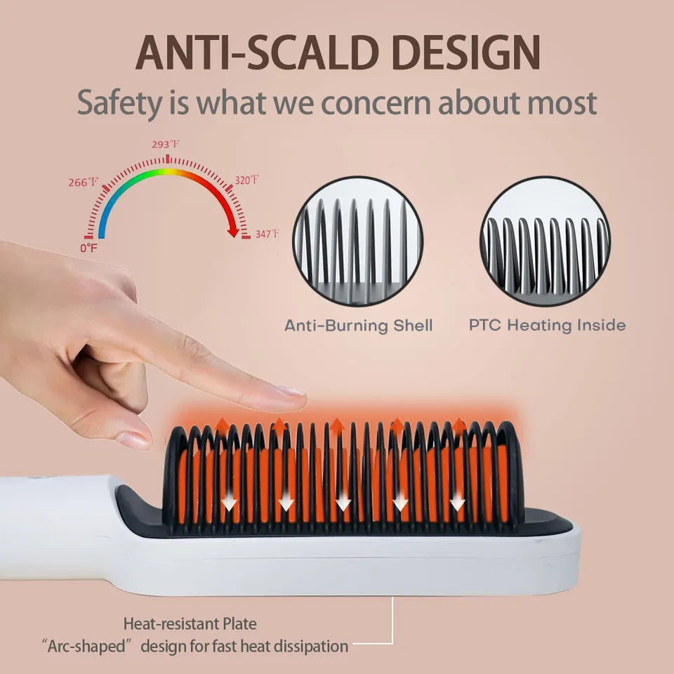 - New Hair Straightener Ceramic Heated Hair Brush Model HA808 Multifunction and Professional Hair Straightener Volumize hair, flatten side hair & straighten curly hair Input voltage : 220v, Rated Power: 34W Size: 31cm x 4.6cm x 4.5cm, Net weight – 386g Easy to Use with 5 Temperature controls Reduce frizzing & detangling Light Weight and Ergonomic Comfortable Handle Quick heating and amazingly long-lasting results Min to Max temperature: 130 to 200 Degrees Celcius Name: straight hair comb Rated voltage: 220 V Rated frequency: 50 Hz Rated power: 45 W Heating method: ptc heating Product size: 30mm*270mm Three-minute styling straight hair comb 6 major technologies to care for hair: 30S rapid heating, ptc ceramic heating, constant temperature hair care, anti-scalding design, temperature control, dual-use for straight hair. Dual-purpose hair straightening comb and electric splint can easily help you solve hair quality problems and improve hair gloss and suppleness Adopt ptc heating technology, rapid heating, automatic constant temperature, reduce the hair damage caused by fluctuating cold and hot temperature Makes shiny, vertical and straight hair, easy to style at home The outer comb teeth adopt anti-scald heat insulation cover, the comb teeth are smooth to reduce the hair pulling, and the heat insulation protects the hands from being scalded. The Hair Brush makes detangling and styling a breeze. Perfect for all hair types. Say goodbye to bad hair days with the Brush. Get silky smooth locks in minutes. The Hair Brush features flexible bristles for gentle detangling and a shiny finish. Experience the power of Hair Brush for tangle-free hair and effortless styling. Get salon-worthy results with the Hair Brush, perfect for all hair types and lengths.